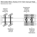 EN: Airconditioning, Anti-lock braking system, Cruise control, Electrically operated windows, Hub reduction, Power take-off, Radio/CD player, Remote control crane, Roof hatch, Steel suspension front and back side, Toolbox, Visor