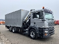 EN: 12 Volt connection in the cabin, ABS, Airconditioning, Air suspension rear, Central armrest, Central locking, Cruise control, Electrically operated windows, Heavy duty engine brake, Power take-off, Radio/CD player, Remote control crane, Roof hatch, Visor, Warning lights