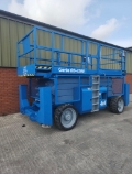 Here we have a 2001 Genie 4390RT 4x4 scissor lift for sale, good set of solid non marking tyres, drop down rails, twin extending deck slide out deck extension