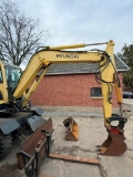 Hyundai 55W-9 Mobile Excavator Year of manufacture 2011 5900 hours Air conditioning Including pallet forks, tilting bucket and digging bucket Trade-in of construction machinery is possible. For additional photos, videos or information, please feel free to contact us. Transport throughout Europe is possible, please ask about the options. = More information = Year of manufacture: 2011 Drive: Wheel Empty weight: 5.550 kg