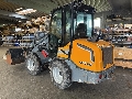 Brugt minilæsser med lukket kabine med varme, højt tårn, skovl og pallegaffel, smøreanlæg, maskinen er løbende serviceret.