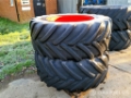 A pair of Michelin Xeobib VF 600/60R34 tyres on rims to Fendt 828 front axle. Around 25% tread remaining. One tyre looks to have had a repair(pictured).
