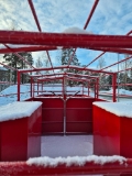 Dinapolis djurvagn hydraulisk höj/sänk bar hydraulisk broms två grupper inuti springa ner till för renspolning Krokar för grindar 2st förvaringslådor Kapell tak L=6,3m B=2,55 H=2,1 Lastvikt 6 T