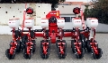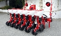 Mascar-Einzelkornsämaschine Maxi-5 mit hohem Säelement (für Rüben, Mais, Sonnenblumen, Kürbis etc.), 50 cm Reihenabstand, Doppeltiefenführungsrollen, V-Gummi-Andruckrollen 2", zentrales Wechselradgetriebe (18 Gänge), mechanische Reihenauskuppelvorrichtung, hydraulische Mittelspuranzeiger, Antriebsräder 5.00 x 15, Gelenkwelle.