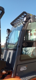 Stahlkabine schwingend gelagert, akustisches Rückfahrsignal, Minihebel, Fahrtrichtungsumschalter in der Armlehne, Sonnenrollo, blaues Warnlicht nach hinten gerichtet, Verriegelung der 4. Hydraulikfunktion, I-Site, inkl. Schocksensor, Pin-Code, Sonderausstattung: Multifunktionsdisplay