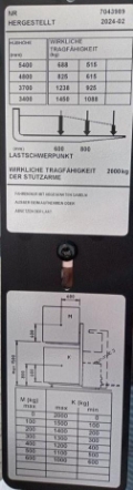 Endkundenbemerkung: Mast Triplex 5400 mm, Bauhöhe 2371 mm, Freihub 1894 mm, Initialhub, Antriebseinheit für erhöhte Resttragfähigkeit, Display mit Lastanzeige in 50 kg Schritte, Pin-Code, Fingerschutz Plexiglas, Gabelrollen Tandem, Antriebsrad Friction, Stützrad Premium, CE-Erklärung, Sonderausstattung: Antriebseinheit für erhöhte Resttragfähigkeit, Pin-Code, Lastanzeige in 50 kg Schritte, Fingerschutz Plexiglas, Antriebsrad Friction , Stützrad Premium, , SpecialEquipment: Initialhub, CE Zertifikat