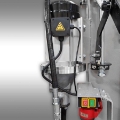 Der Spaltkeil bleibt nach Loslassen der Bedienhebel in jeder Position stehen und fährt nur durch Hochdrücken der Bedienhebel zurück. Die Feder muss für diese Funktion eingehängt sein.