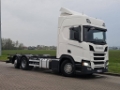 Number of axles: 3, Configuration: 6x2, Own weight: 10250 kg, Gross vehicle weight: 26500 kg, Total fuel capacity: 1100 litre, 2nd fueltank, Trailer coupling, Kingpin size: 40 DIN, fifth-wheel: Fixed, Diff. locks: 1, Suspension type: air suspension, Cabin type: Sleeping cabin, Cruise control, Tacho, Digital tachograph, Airconditioning, Parking Airco, Parking heater, Electric windows, Electric mirrors, Radio/cassette, Color: white, Heated mirrors, Lighting type: Led lamps, Laneassist, Climatecontrol, Seat heating, Bluetooth, Engine capacity: 331 Kw (444 Hp), Fuel type: diesel, Euro: 6, Gearbox kind: Opti-cruise, Gearbox make: Scania, Number of Gears: 12, Add. break system, Retarder make: Scania, Power steering, ABS, ASR, Starter battery, Twistlocks: 1x20, Systemlength: 80 cm, Central locking, Seats configuration: 1+1, Seat cover: cloth, Chair adjustment: Manually