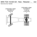 Rear axle: Tyre size: 315/70R22.5; Double wheels; Max. axle load: 13000 kg; Tyre profile left inner: 100%; Tyre profile left outer: 100%; Tyre profile right outer: 100%; Tyre profile right outer: 100%